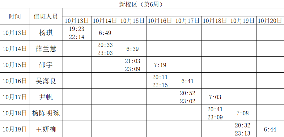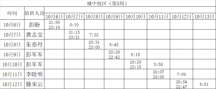 2025-2026学年第一学期第5-6周学工人员寝室值班通报