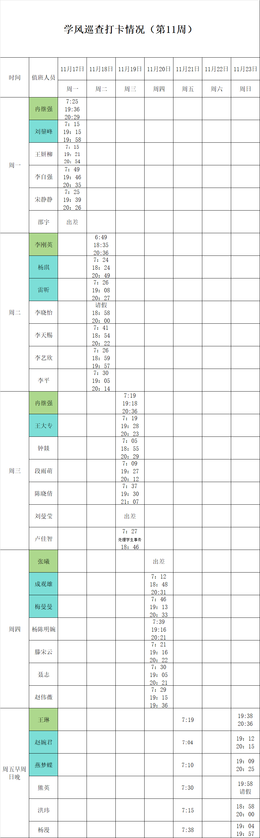 2025-2026学年第一学期第11-12周学风巡查打卡情况公示