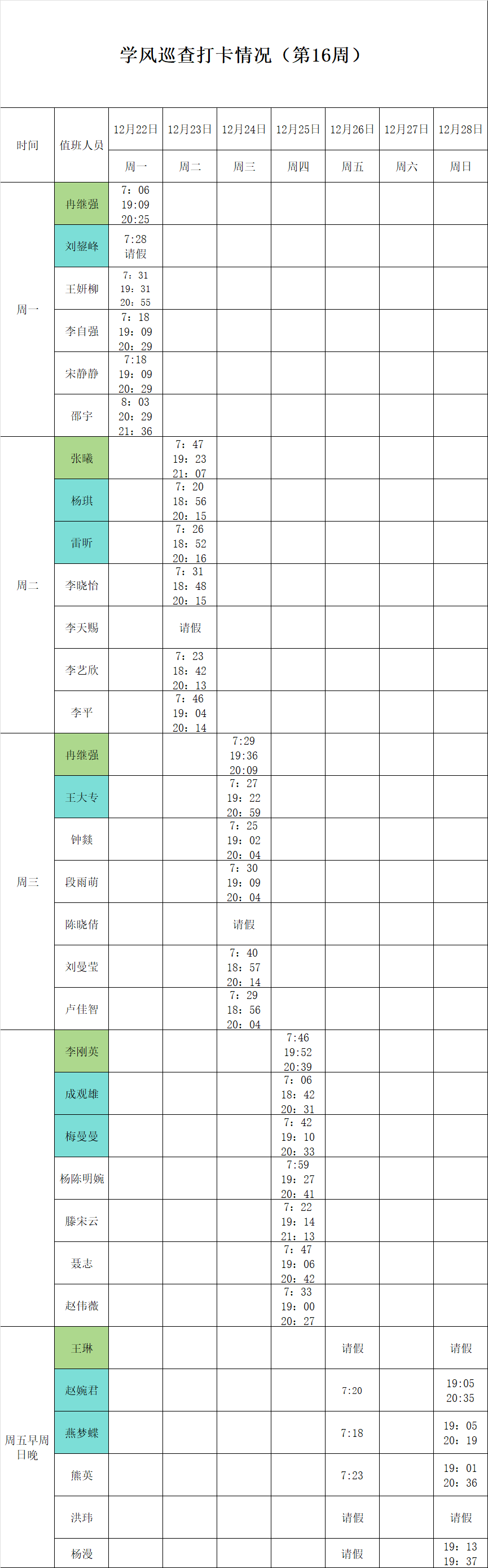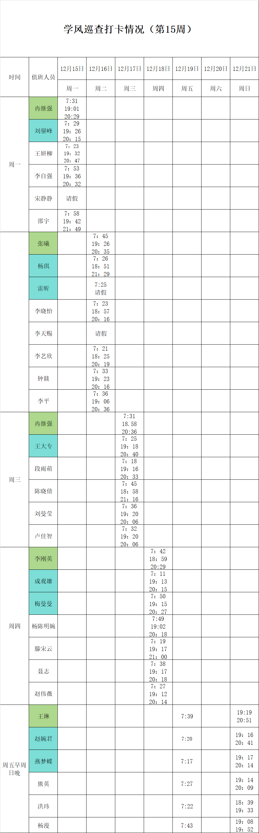 2025-2026学年第一学期第15-16周学风巡查打卡情况公示