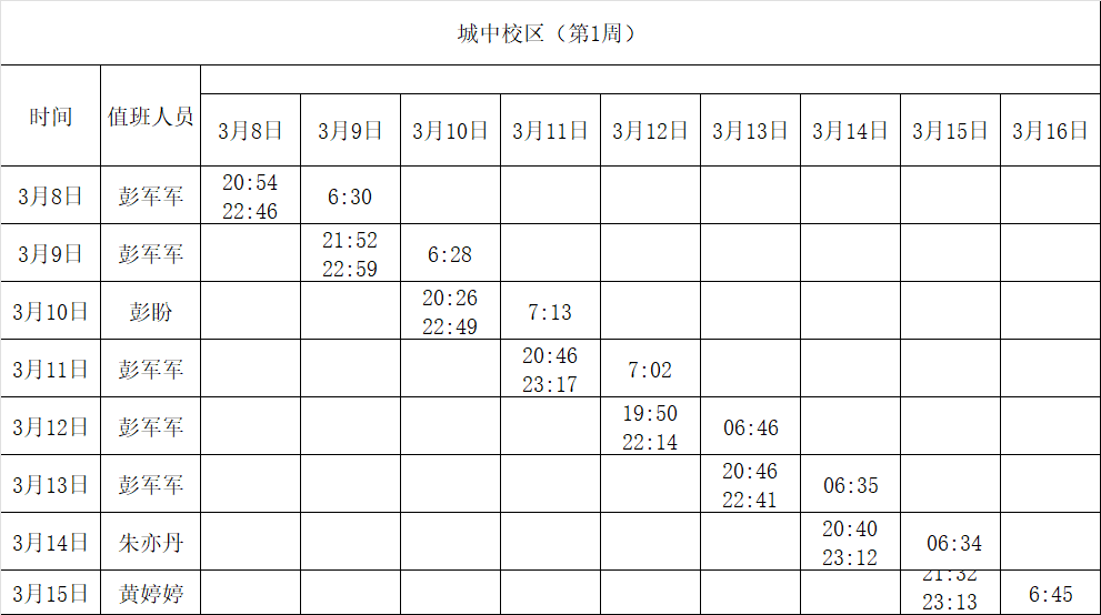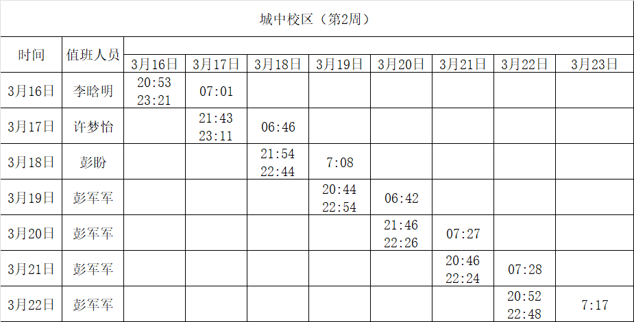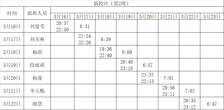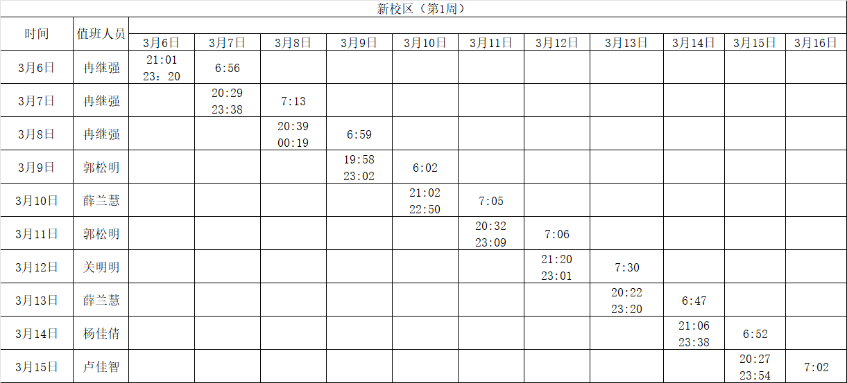 2025-2026学年第二学期第1-2周学工人员寝室值班通报