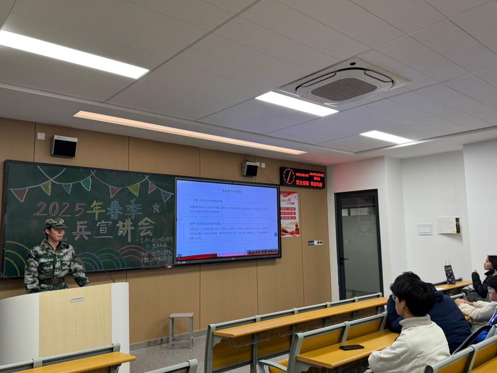 此次班级宣讲活动,将征兵工作的“最后一公里”切实打通,让国防教育真正走进了学生中间。下一步,我校将持续推进征兵宣传工作,通过组织退伍学长分享会、国防教育知识等系列活动,为有志青年搭建起通往军营的桥梁,鼓励更多学子用青春热血书写保家卫国的壮丽篇章。