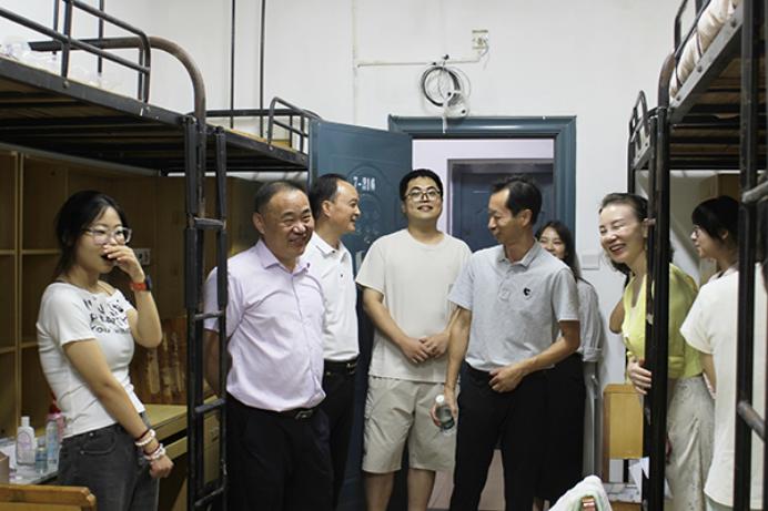 迎新期间,长江大学党委副书记敖廷华来到迎新现场慰问师生,并在我校领导李兴祥院长、党委书记颜建洲的陪同下,共同看望前来报到的新生和家长,慰问一线工作人员。李兴祥院长、颜建洲书记在报到工作结束后,分别带队深入学生寝室,了解2025级新生报到情况。