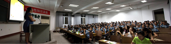 本网讯(见习记者 王抒曼)9月10日晚,一场主题为“美丽青春,如花绽放”女性知识讲座在我院工会大厅举行,2015级医护系和外语系全体女生,现场聆听讲座。